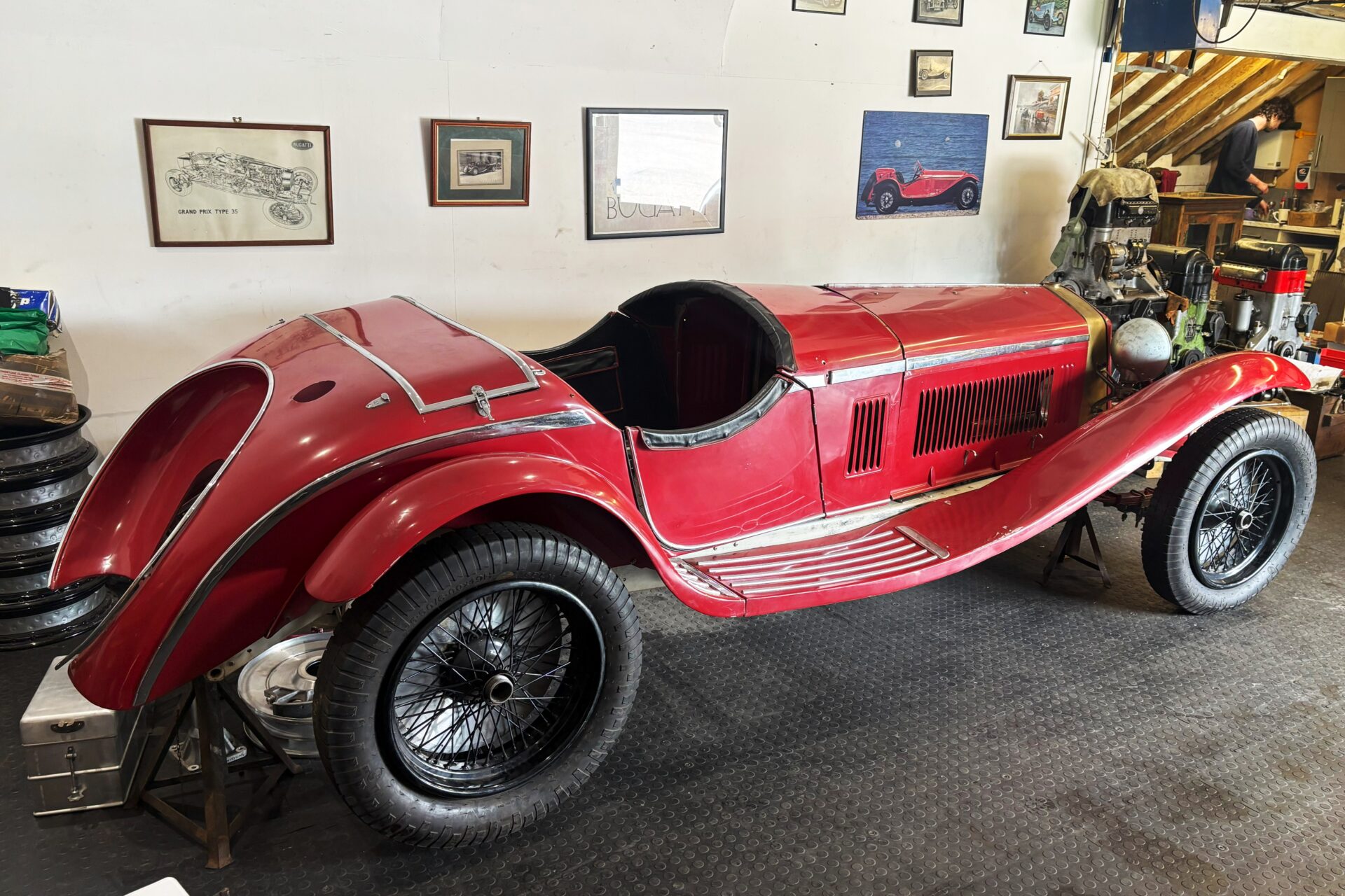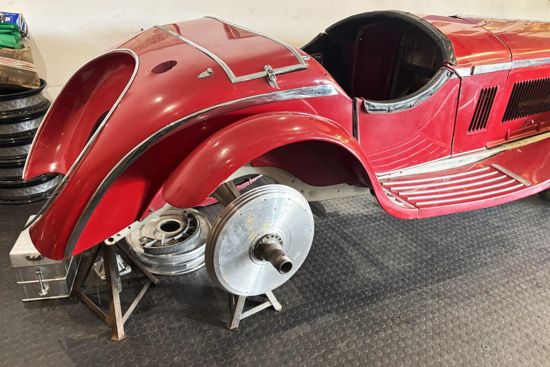 Complete 8C Zagato-style body with consistent patinated paintwork. Complete with doors, bootlid, bonnet, wings and wing irons/stays, running boards, floorboards, toe-board, windscreen surround (unfinished), complete battery box, complete tool box, bonnet catches, bulkhead and Autovac tank.