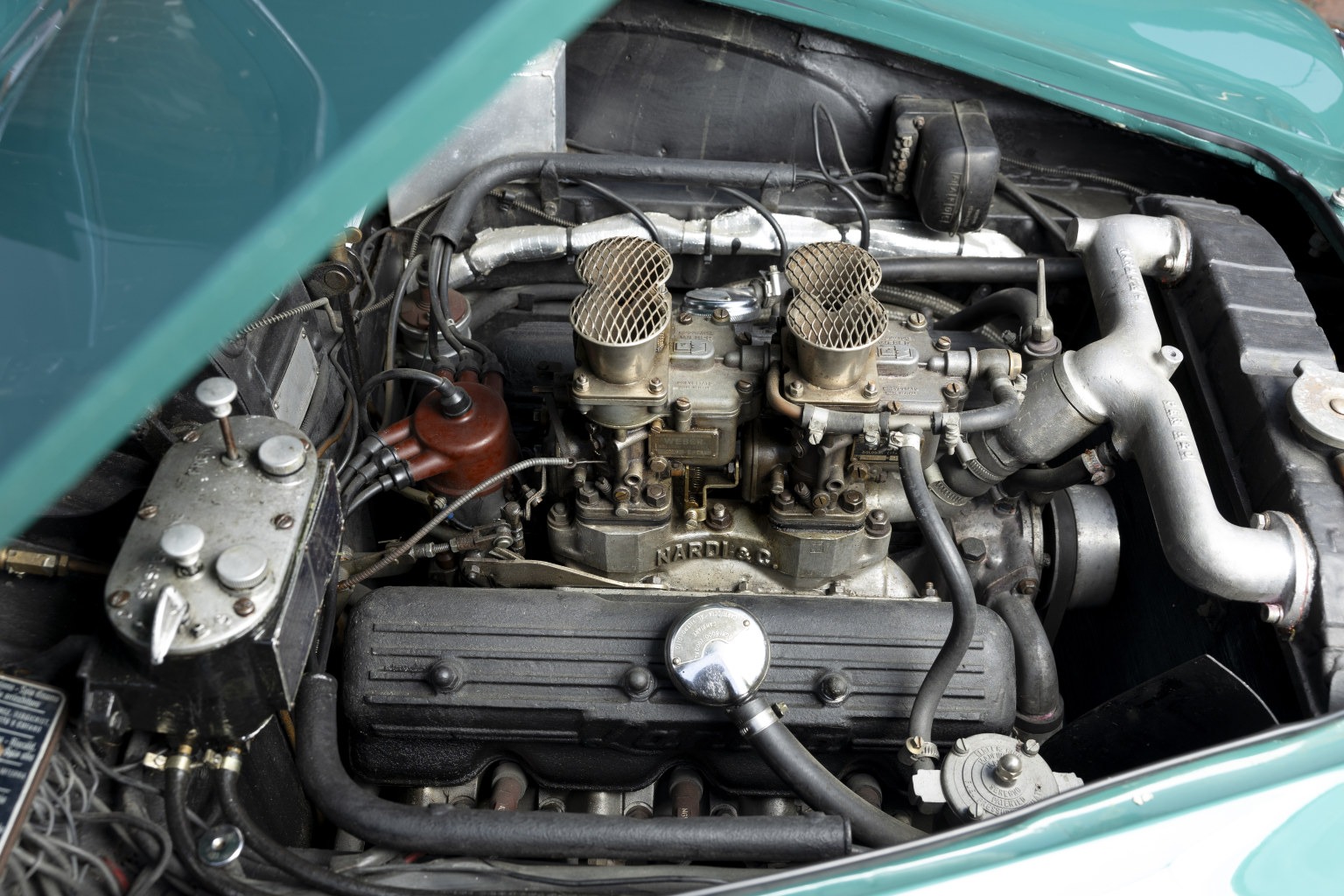 The engine is a stronger 5th series unit with a Nardi inlet manifold and two twin-choke Weber 40 DCL carburettors. Other competition features include 79mm pistons, a Tim Burrett race camshaft and timing chain tensioner.