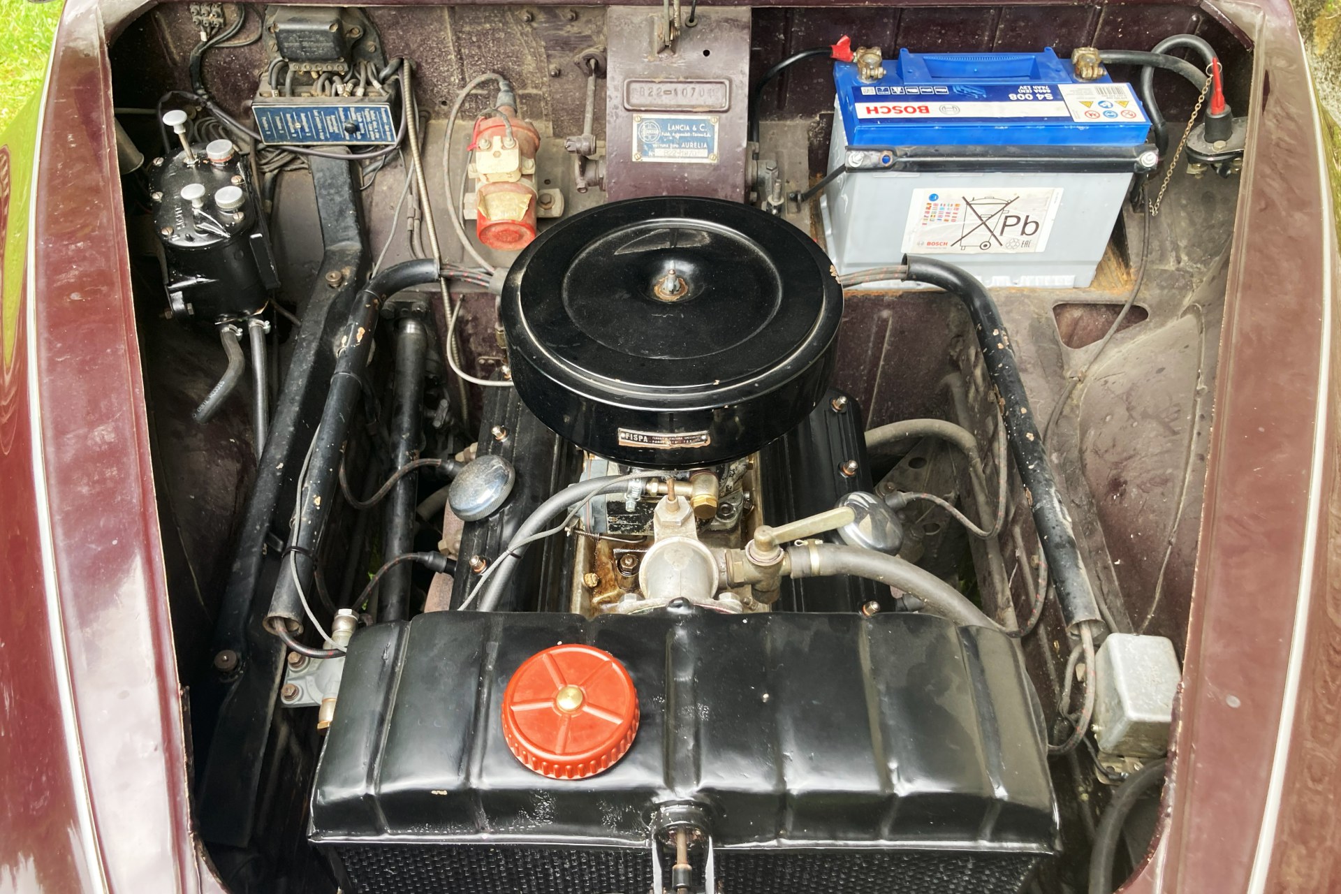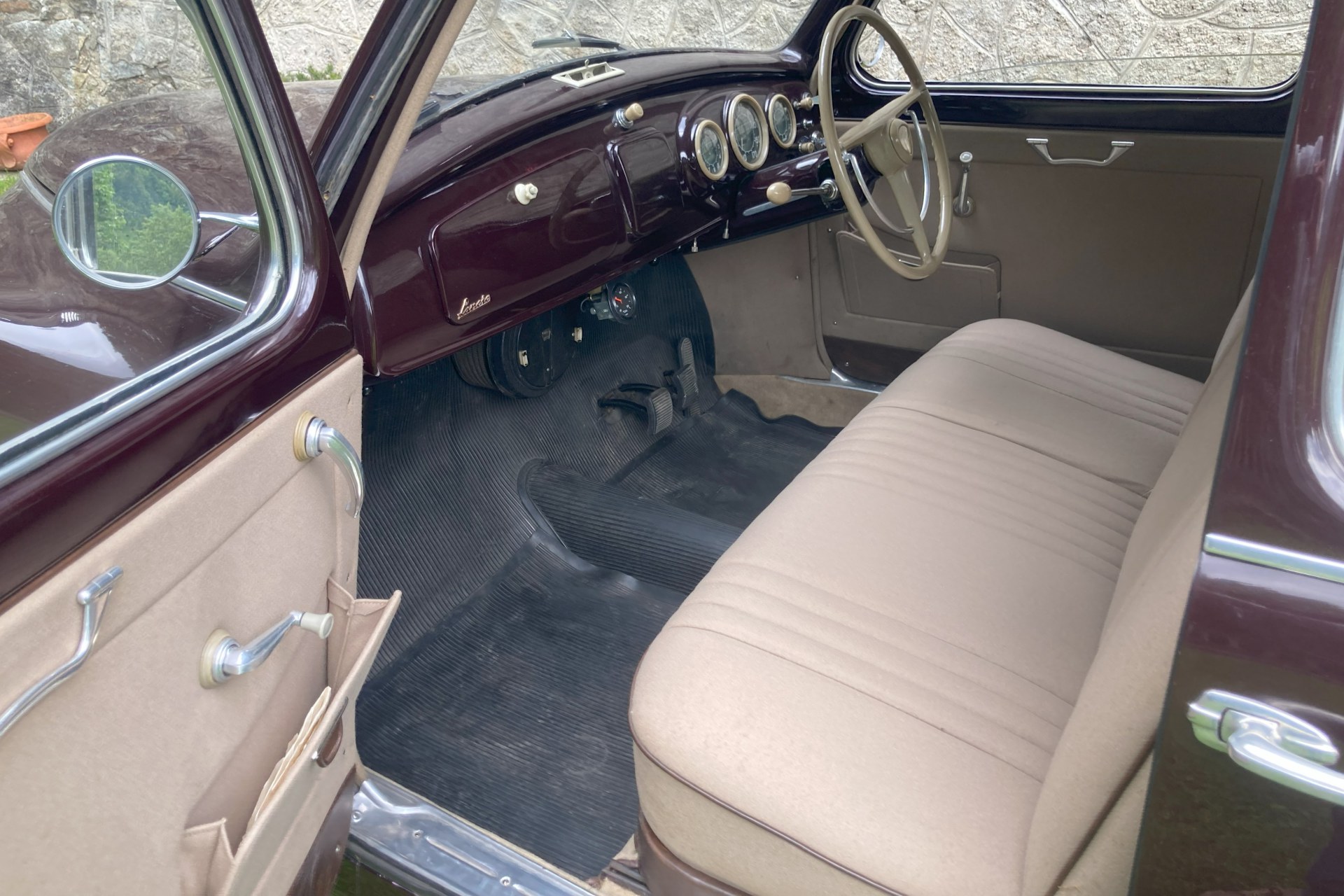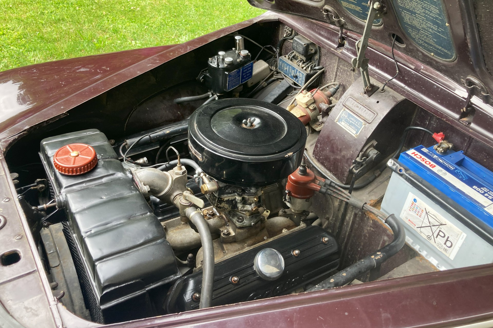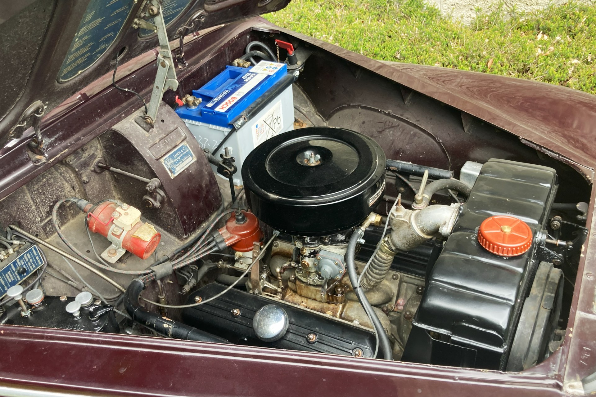 The car we offer here has spent its life in sunny Sicily and consequently has escaped the rust to which Northern European Aurelia saloons often fell prey. Finished in its original dark red and oh so period Amaranto colour with a correct beige Lancia wool cloth interior, the car has had only three previous owners from new, two of them from the same family. The car is complete with all its charming original features, is Italian registered and still bears its original period Palermo number plates.