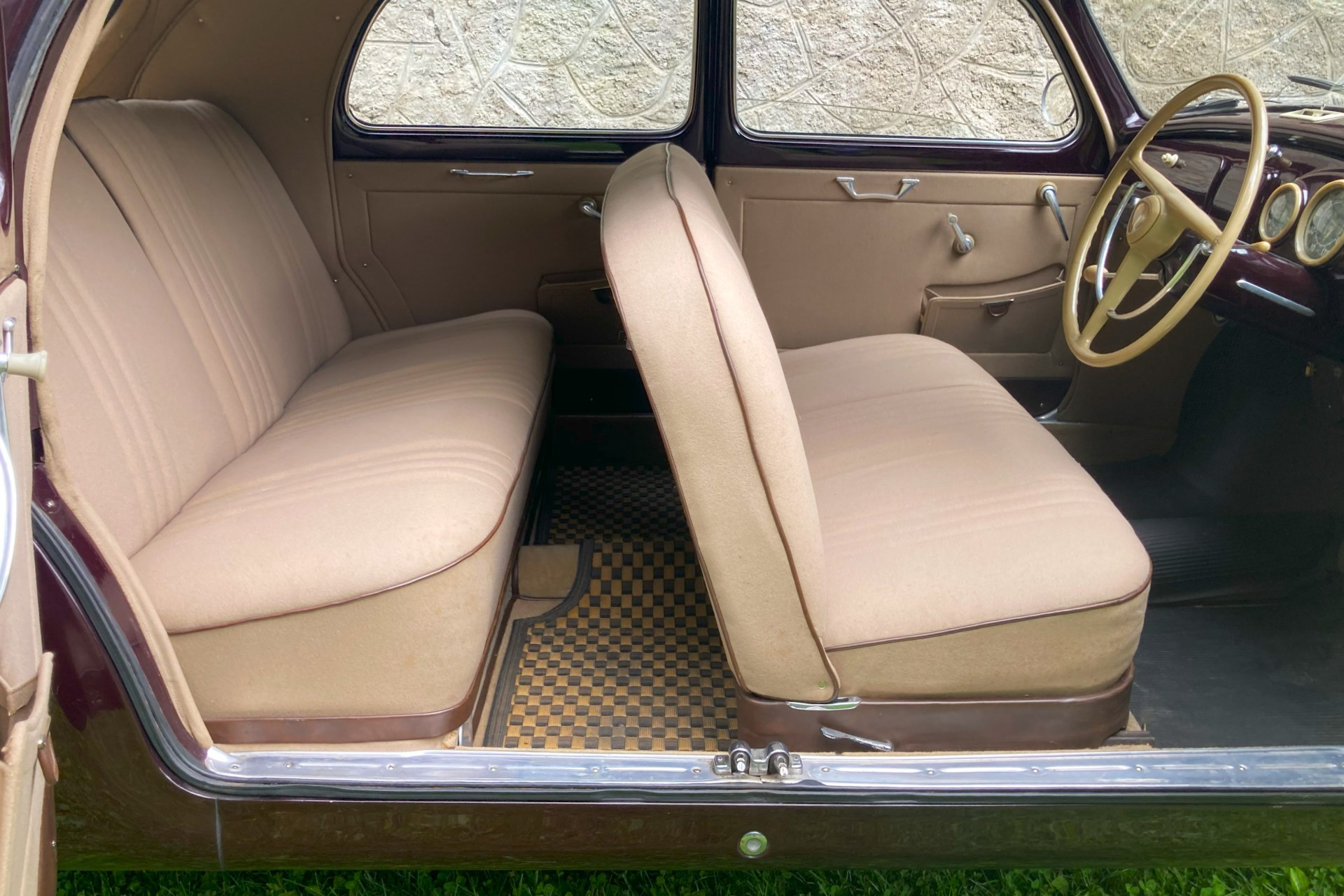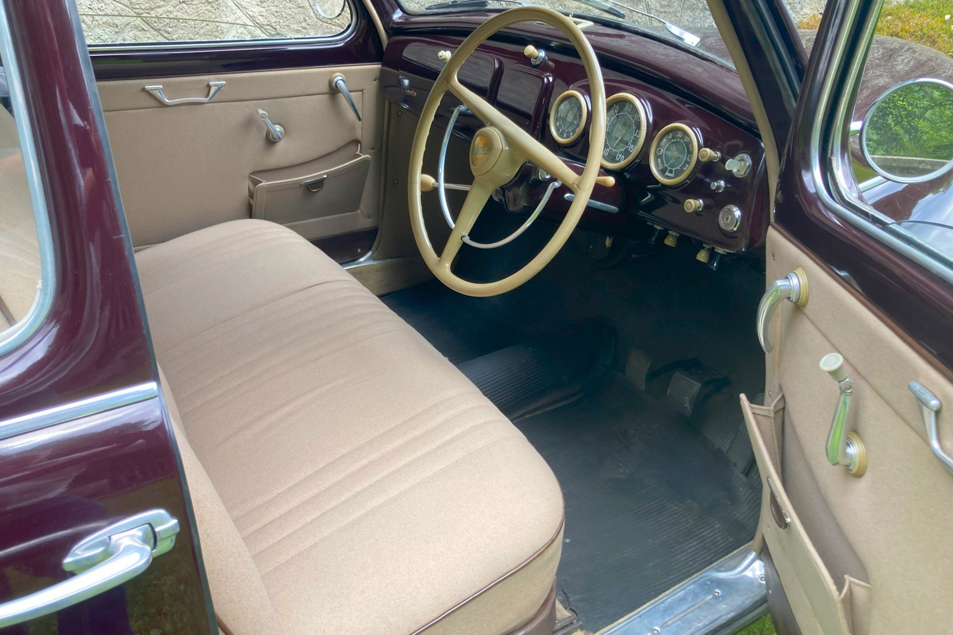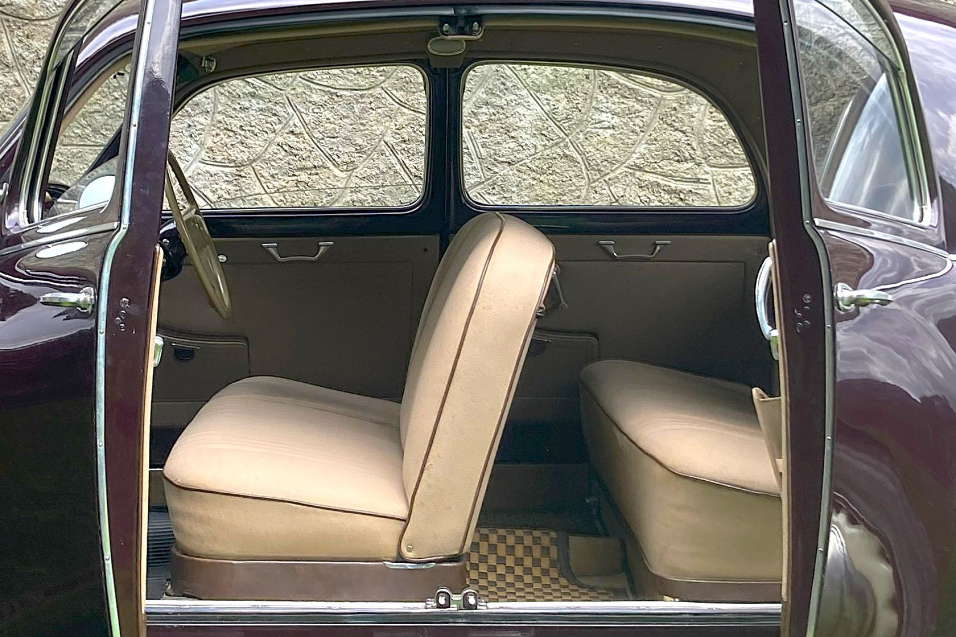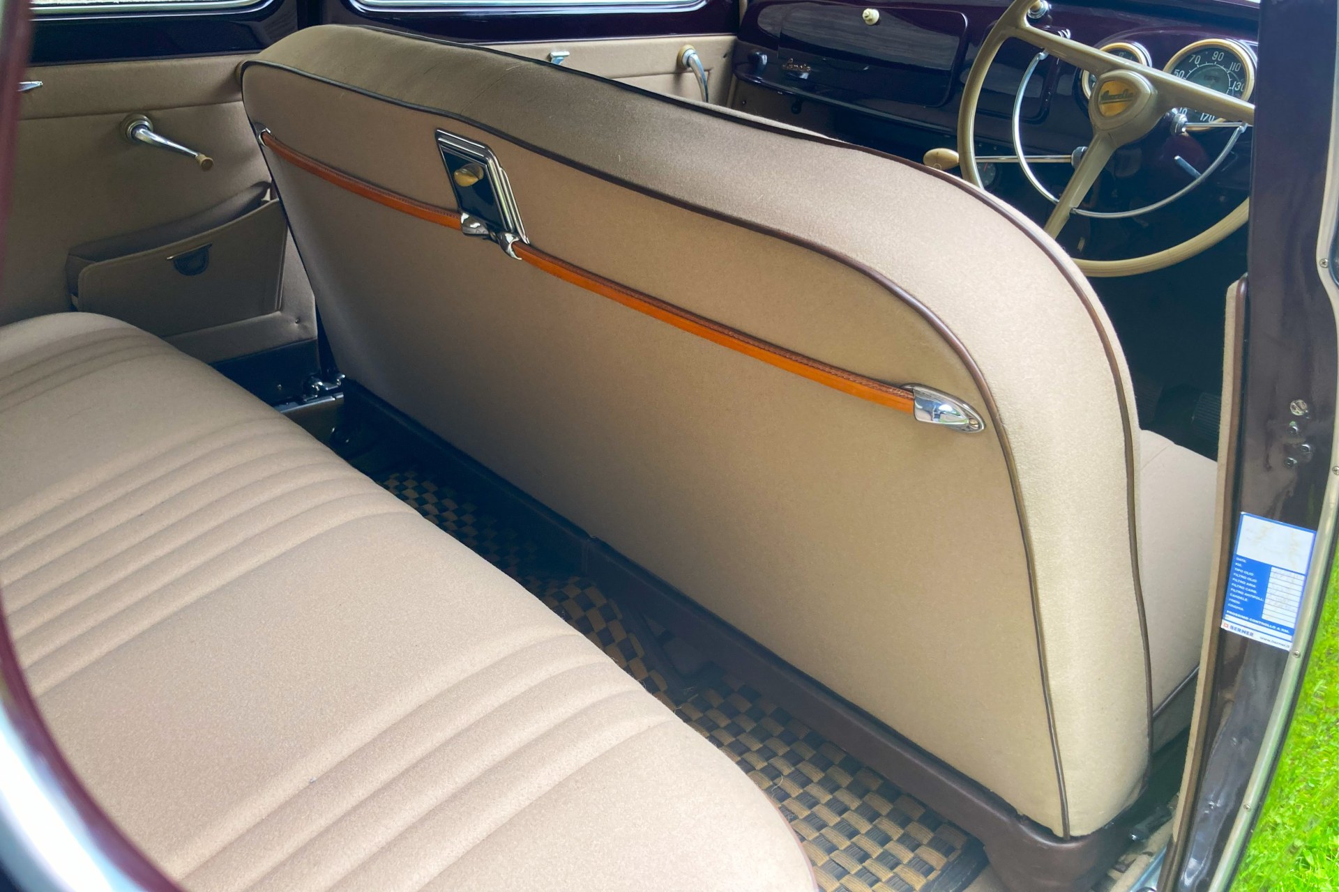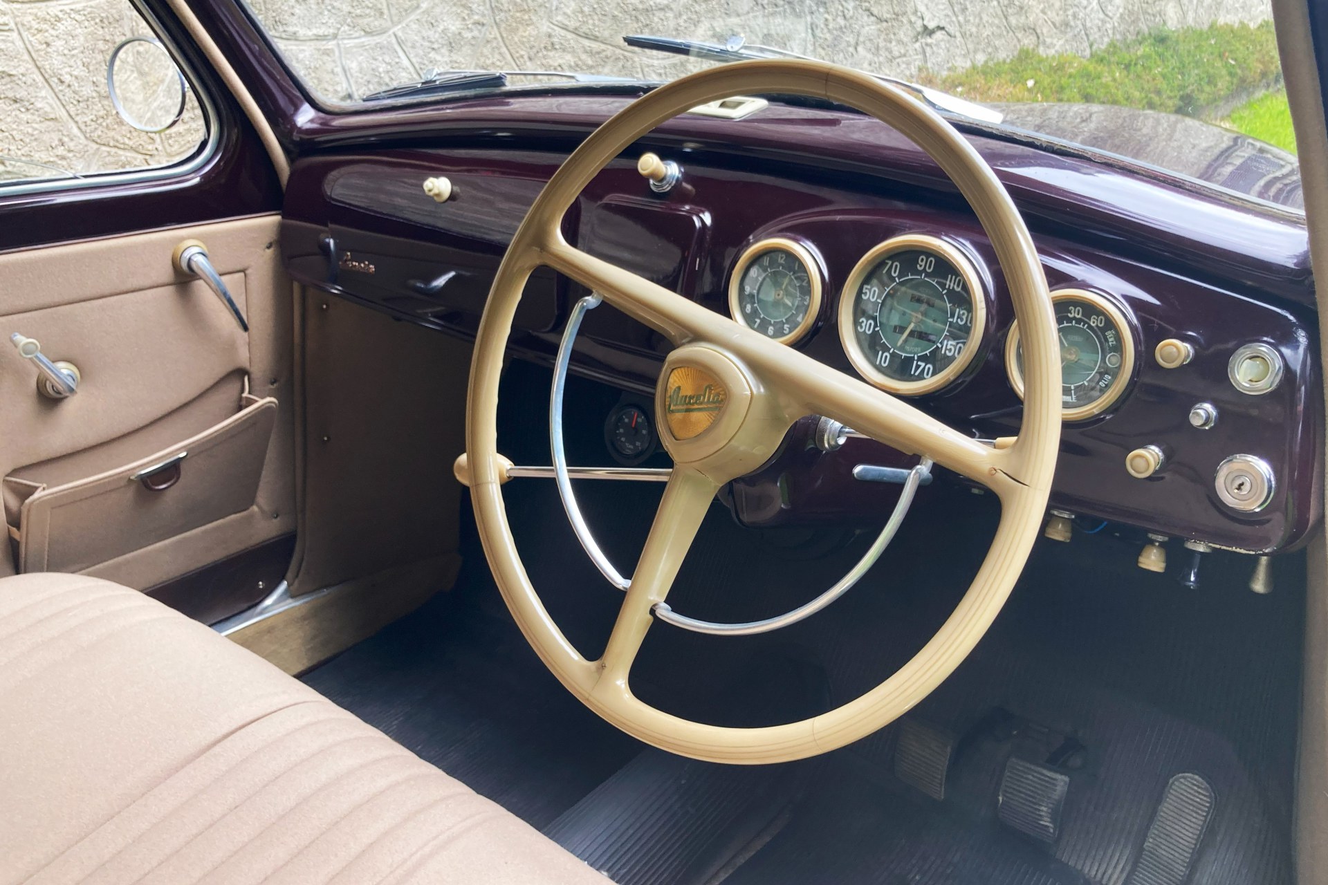 The car we offer here has spent its life in sunny Sicily and consequently has escaped the rust to which Northern European Aurelia saloons often fell prey. Finished in its original dark red and oh so period Amaranto colour with a correct beige Lancia wool cloth interior, the car has had only three previous owners from new, two of them from the same family. The car is complete with all its charming original features, is Italian registered and still bears its original period Palermo number plates.