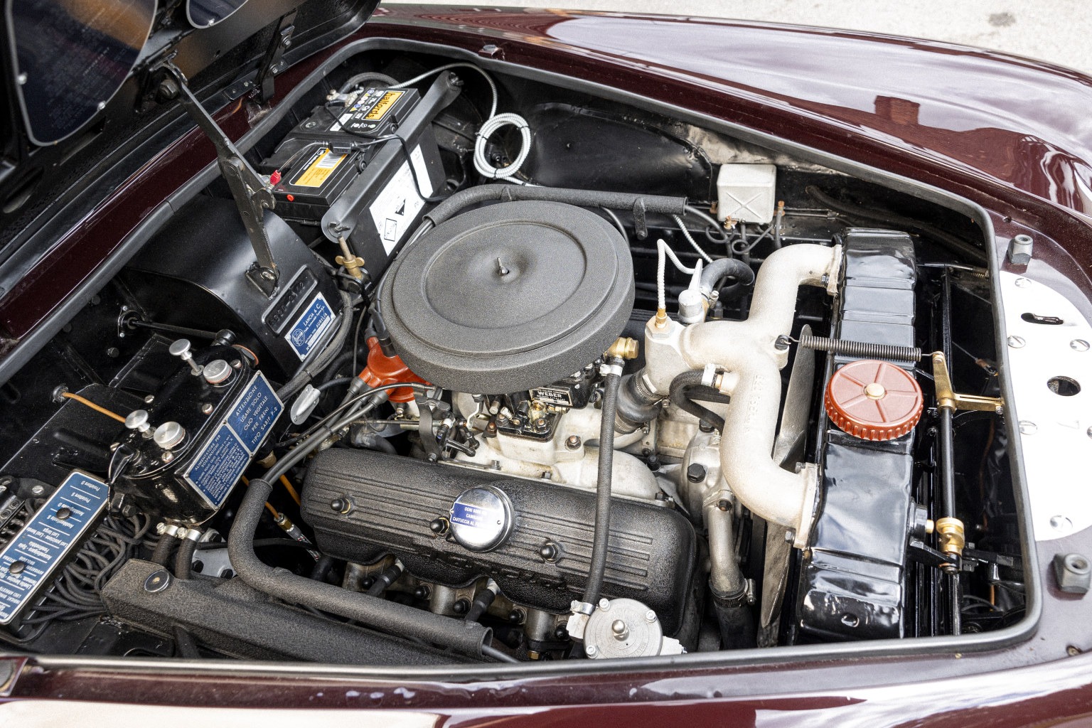 The logbook lists three British owners until it was exported back to Italy before being discovered in 2006 by the car’s current owner, a prominent British Lancia collector.