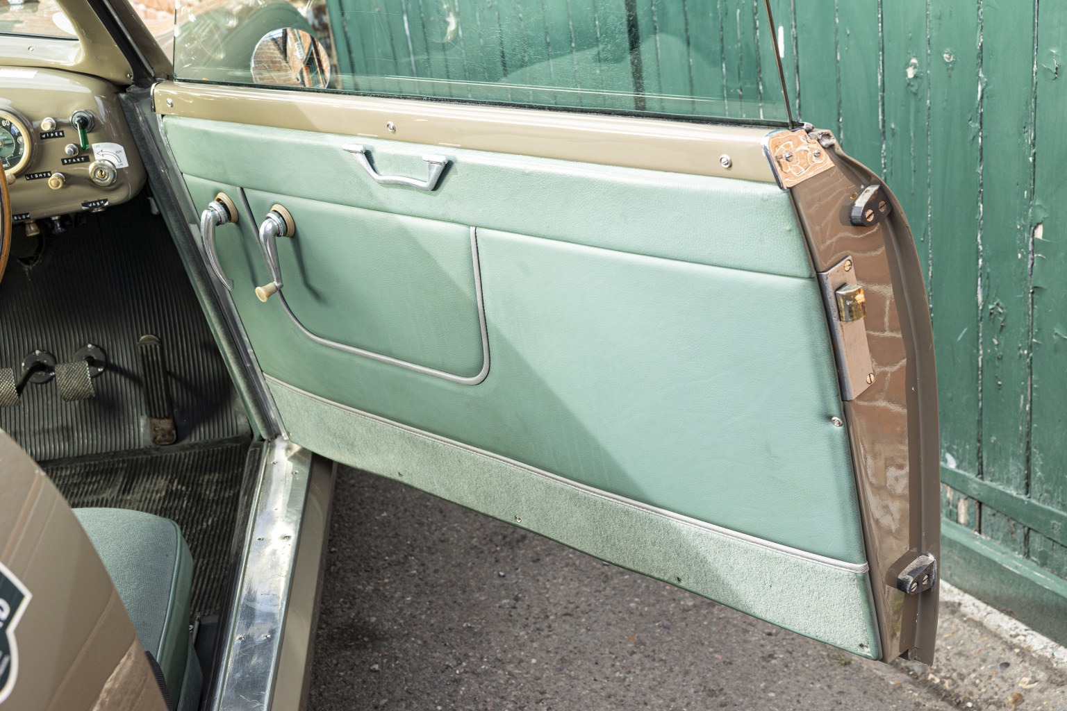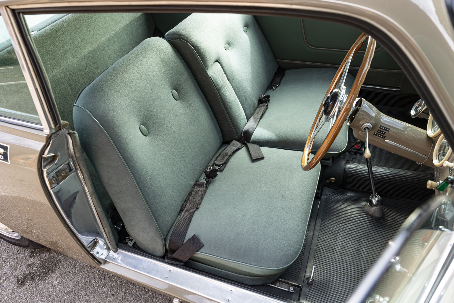 New front and rear screen rubbers, rear quarter light rubbers and boot seal were fitted and the interior was retrimmed in green wool cloth whilst the headlining was replaced with grey wool cloth and a new rubber floor mat set installed.