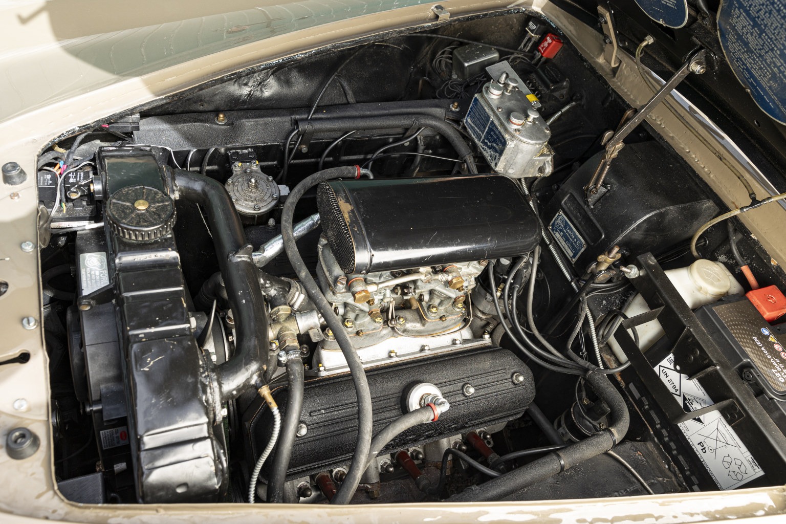 The car was intended to be used in competition so was prepared to that end. Competition-oriented parts fitted include an ignition isolator switch, two-point seatbelts/harnesses, front and rear tow straps, leather bonnet straps, Dynator, Stebel Nautilus air horn, thermo-electric fan, high-performance headlight bulbs, co-pilot reading light and a temperature gauge. A USB connection was also installed below the dashboard.