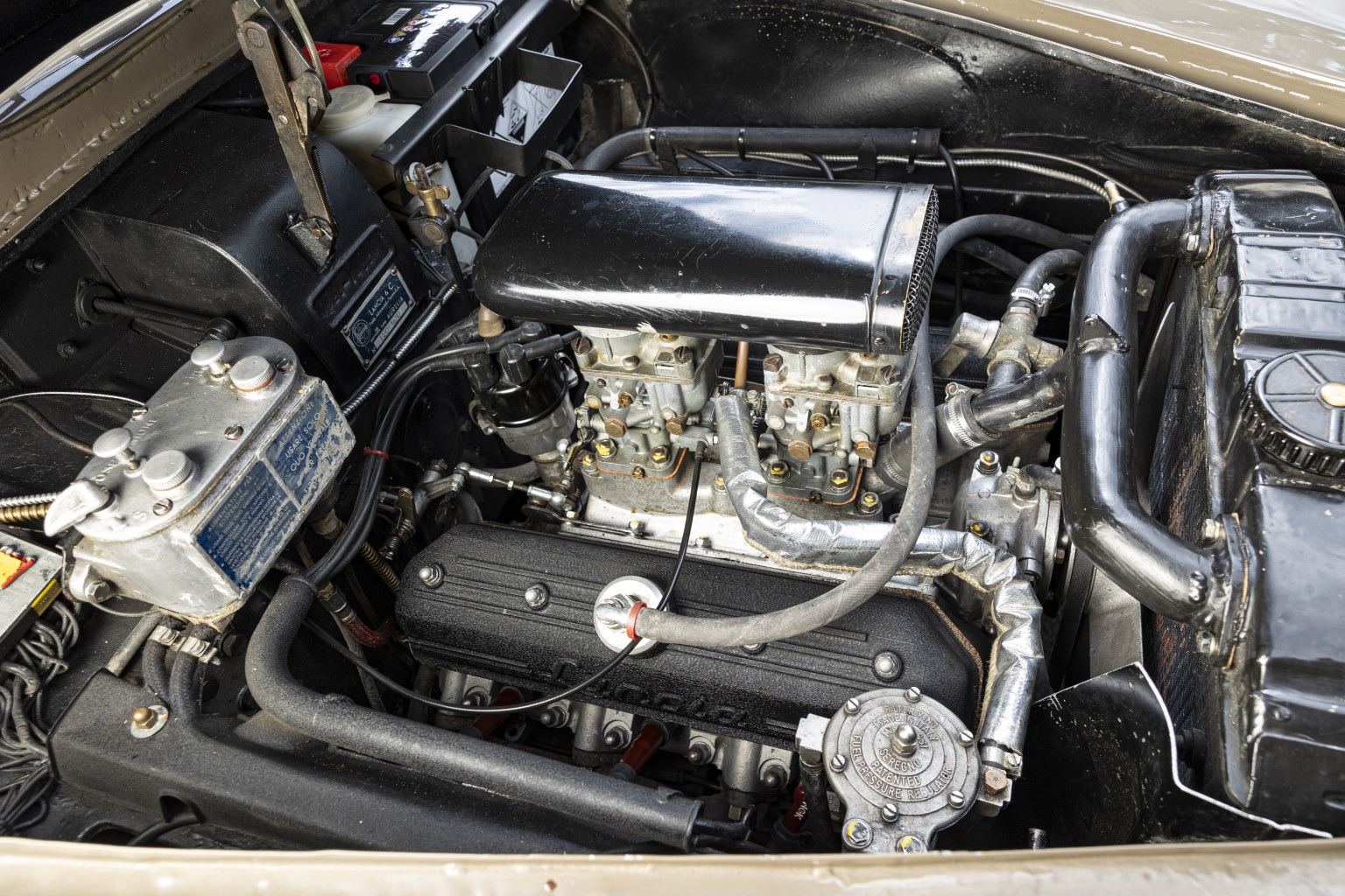 The Aurelia was a ground-breaking design with a new, all-aluminium V6 engine (the world’s first production V6) set well back in the frame. Lancia’s famous independent sliding-pillar front suspension was employed along with independent rear suspension. The gearbox and clutch were housed in a lightweight aluminium-cased transaxle which, along with engine positioning, gave an ideal 50/50 weight distribution. In addition, inboard rear brakes reduced unsprung weight.