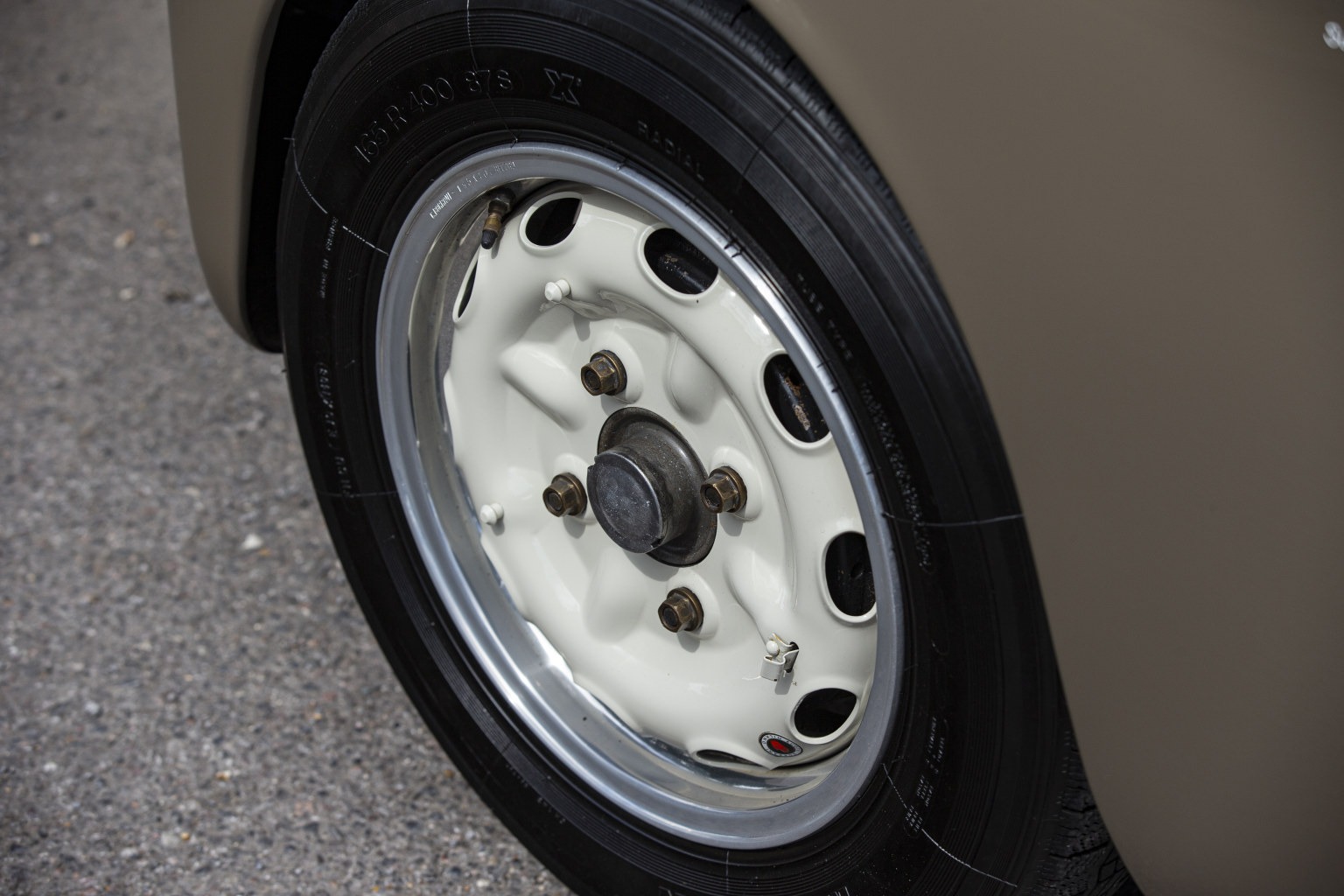 On arrival at TK the body was completely stripped to bare-metal and any corrosion repaired before being repainted in beige whilst the wheels were refinished in cream. The engine was fully rebuilt with six new pistons, liners and conrods. The twin carburettors were also rebuilt and a new fuel pump, stainless steel exhaust system and tyres fitted. The cylinder head was rebuilt with new inlet and exhaust valves. In addition new rear suspension bushes were installed and the rear brake drums were reskimmed and front brake shoes relined. The clutch assembly was rebuilt and the original seat mounts repaired.