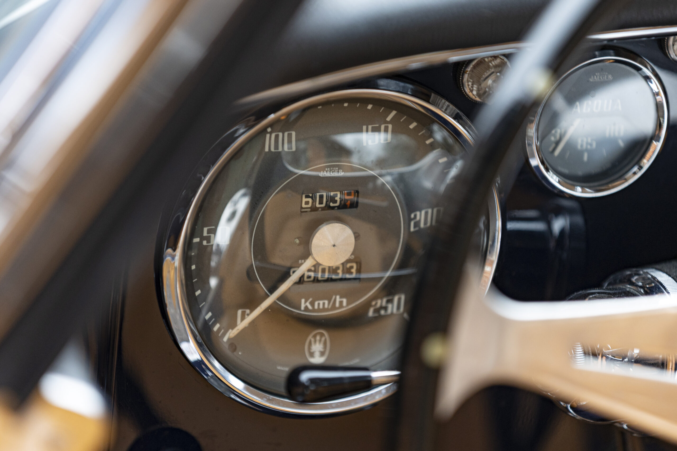 The certificate of origin of chassis 1550 was issued in May 1961 and was delivered to Maserati dealer Cornacchia of Milan. An email on file from ‘Registro Maserati’ confirms the car was originally finished in Verde Tevere (green) with an interior trimmed in Marrone PAC 1386 (brown). Maserati Heritage also confirmed the engine currently fitted is original to the car. The 3500 GT also has the desirable options of front disc brakes and five-speed ZF gearbox.