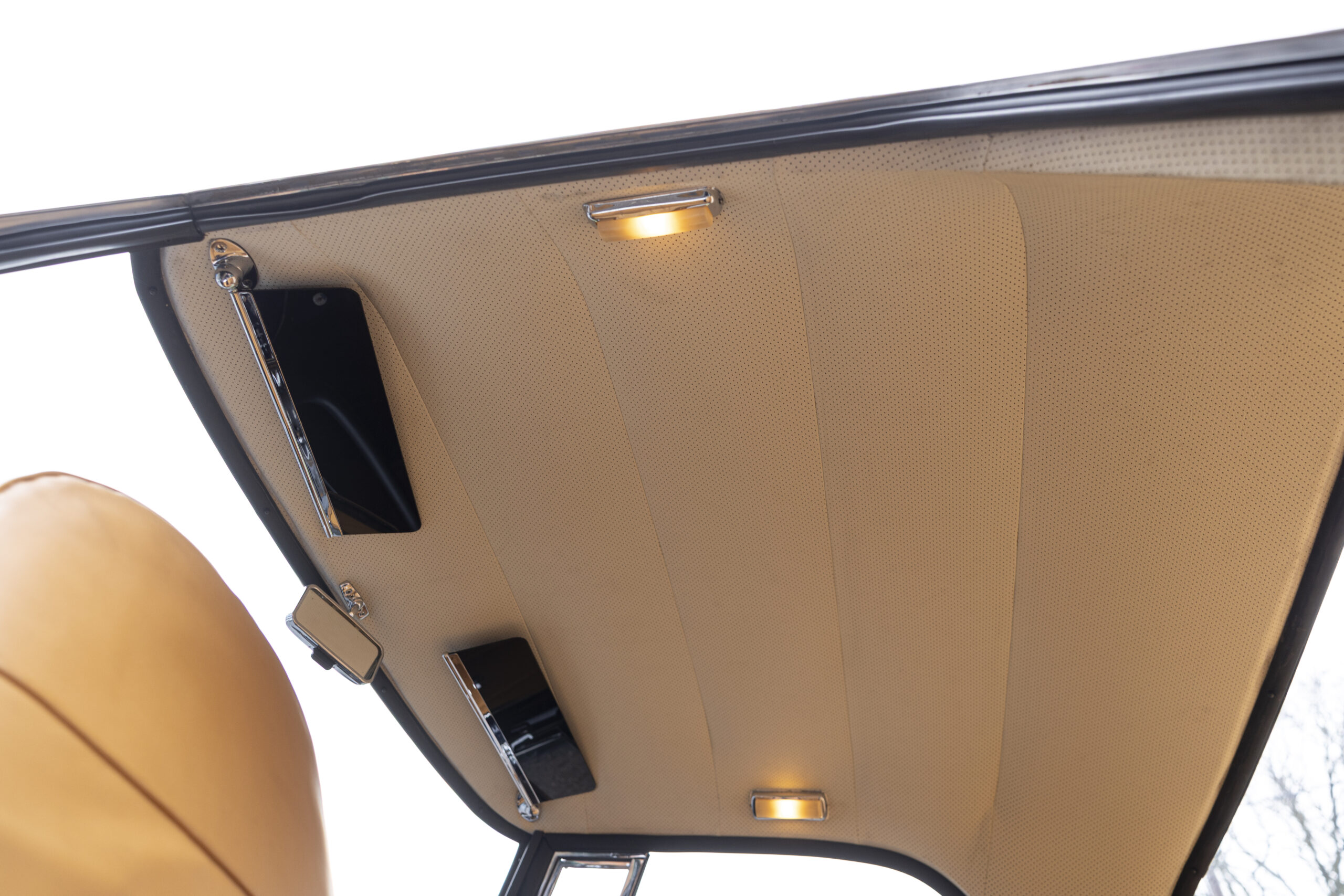 The interior was retrimmed by Chris Hawken of V.I.P. European Auto Interiors of Tempe, Arizona in cognac leather complimented by blue carpets.