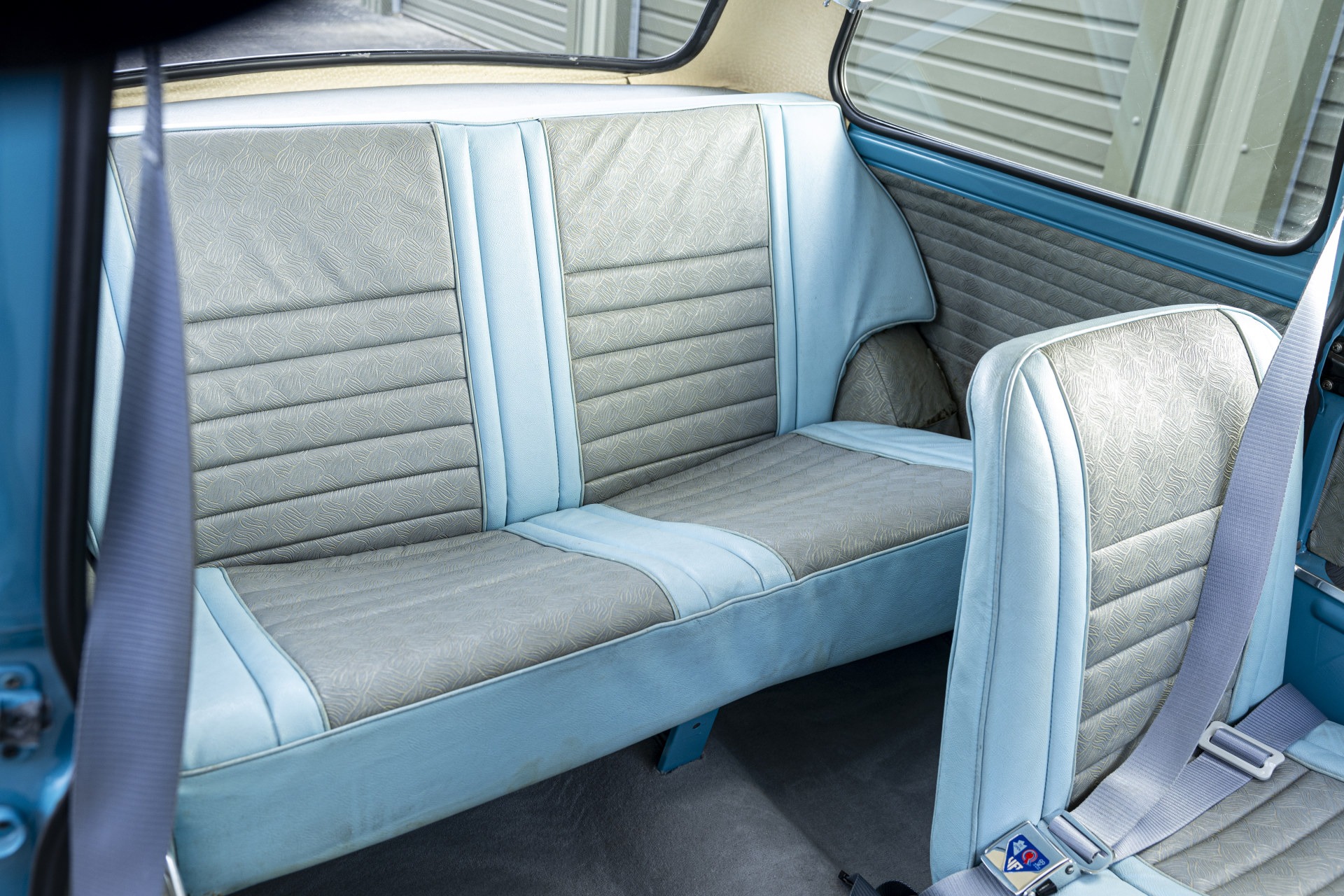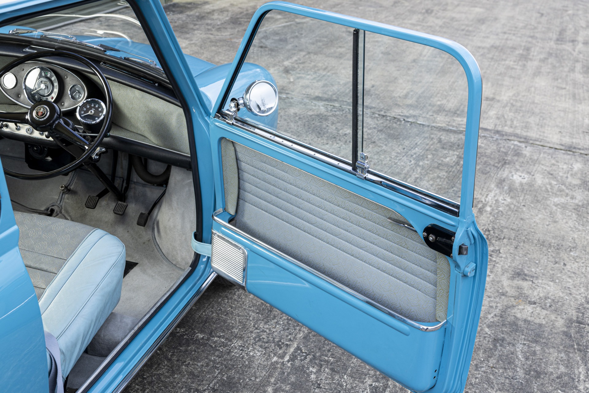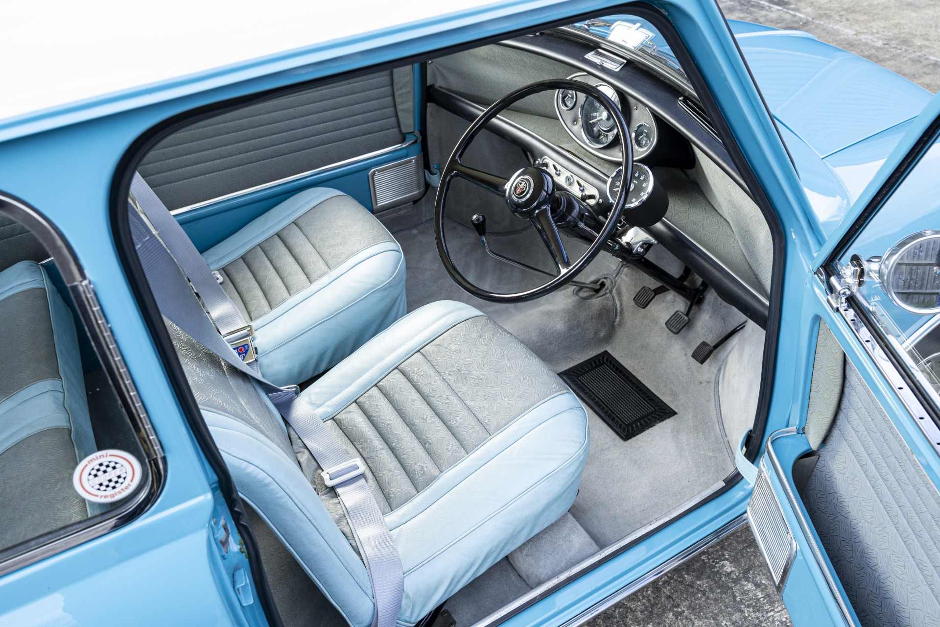 The Mini had survived in remarkably original condition but was in need of restoration. Church rebuilt the car over the next four years using new correct-specification parts where necessary before being finished to its original colour scheme of Surf Blue with white roof.